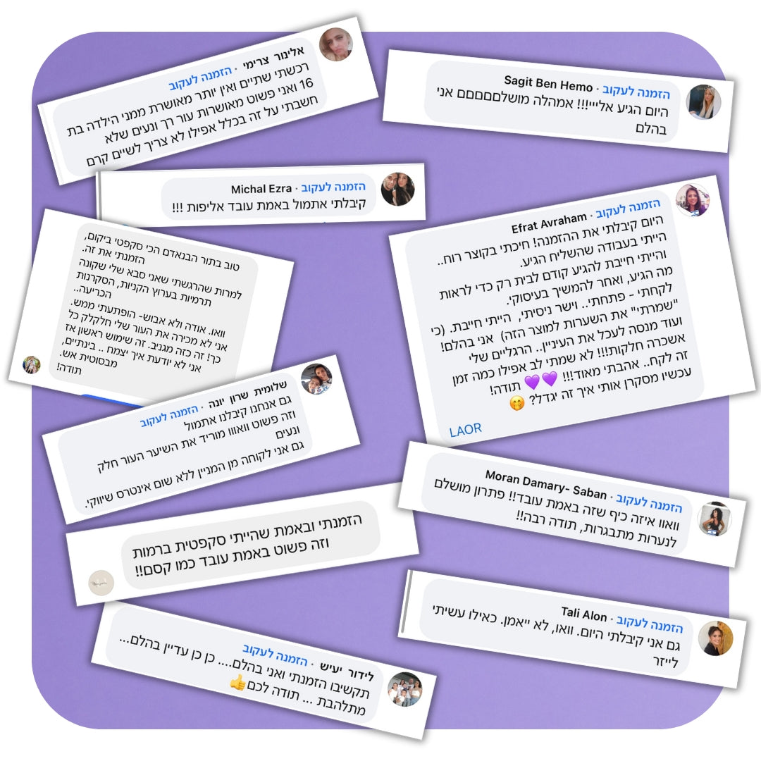 אלו חלק מהבנות שנתנו לנו ביקורת על המכונה שלנו, מדורגת 4.9/5 ועם עשרות אלפי לקוחות מרוצות